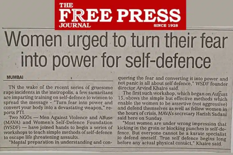 This women’s self-defence workshop conducted by Arvind Khaire self defence expert and the CTS Self Defence System was originally featured in The Free Press Journal Newspaper (August 26, 2002) under the title “Women Urged to Turn Fear into Power.”